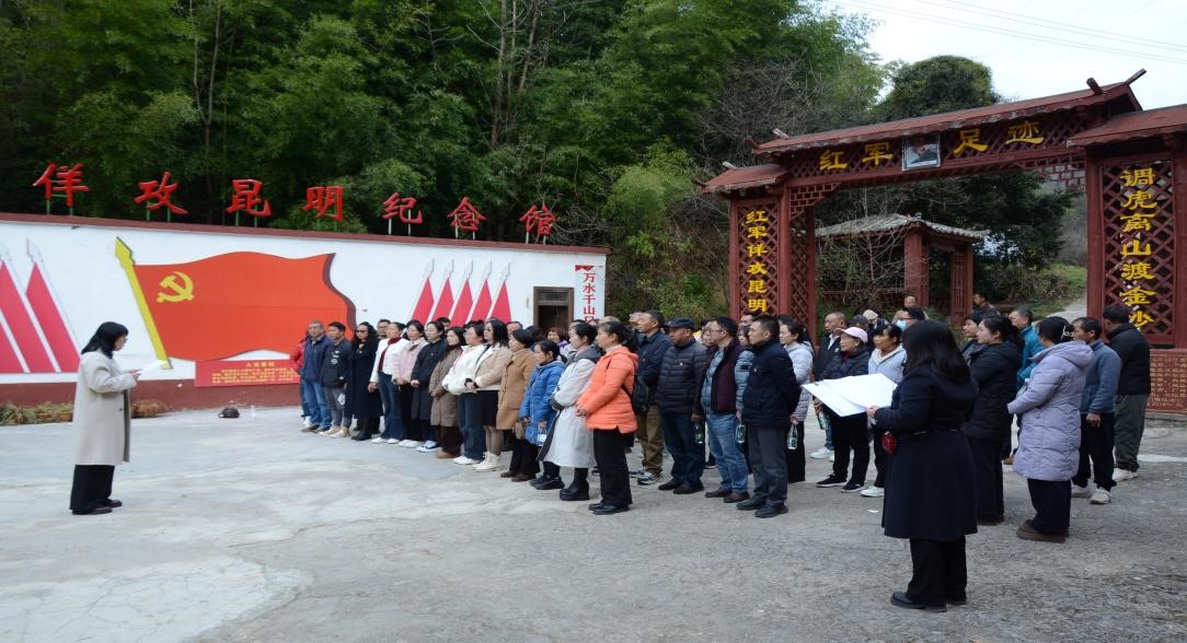为深入学习贯彻习近平新时代中国特色社会主义思想,将红色基因传承与中医药文化弘扬深度融合,2026年1月15日,云南中医药中等专业学校党总支和工会组织全体党员及全体教职工,赴昆明“红军足迹”红色教育基地开展“岐黄润初心·红魂铸医魂——传承红色基因,践行医者使命”主题党日暨“党建引领聚合力,工会暖心系职工”工会联合活动,在沉浸式研学中筑牢信仰之基,在初心淬炼中凝聚奋进力量。