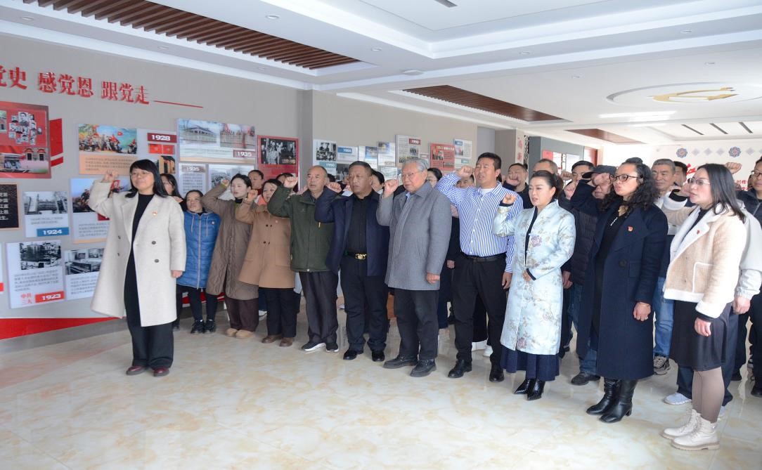 在核心环节中,全体党员面向鲜红党旗庄严列队,举起右拳重温入党誓词,铮铮誓言回荡在教育基地上空,既是对入党初心的回望,也是对医者使命的承诺。